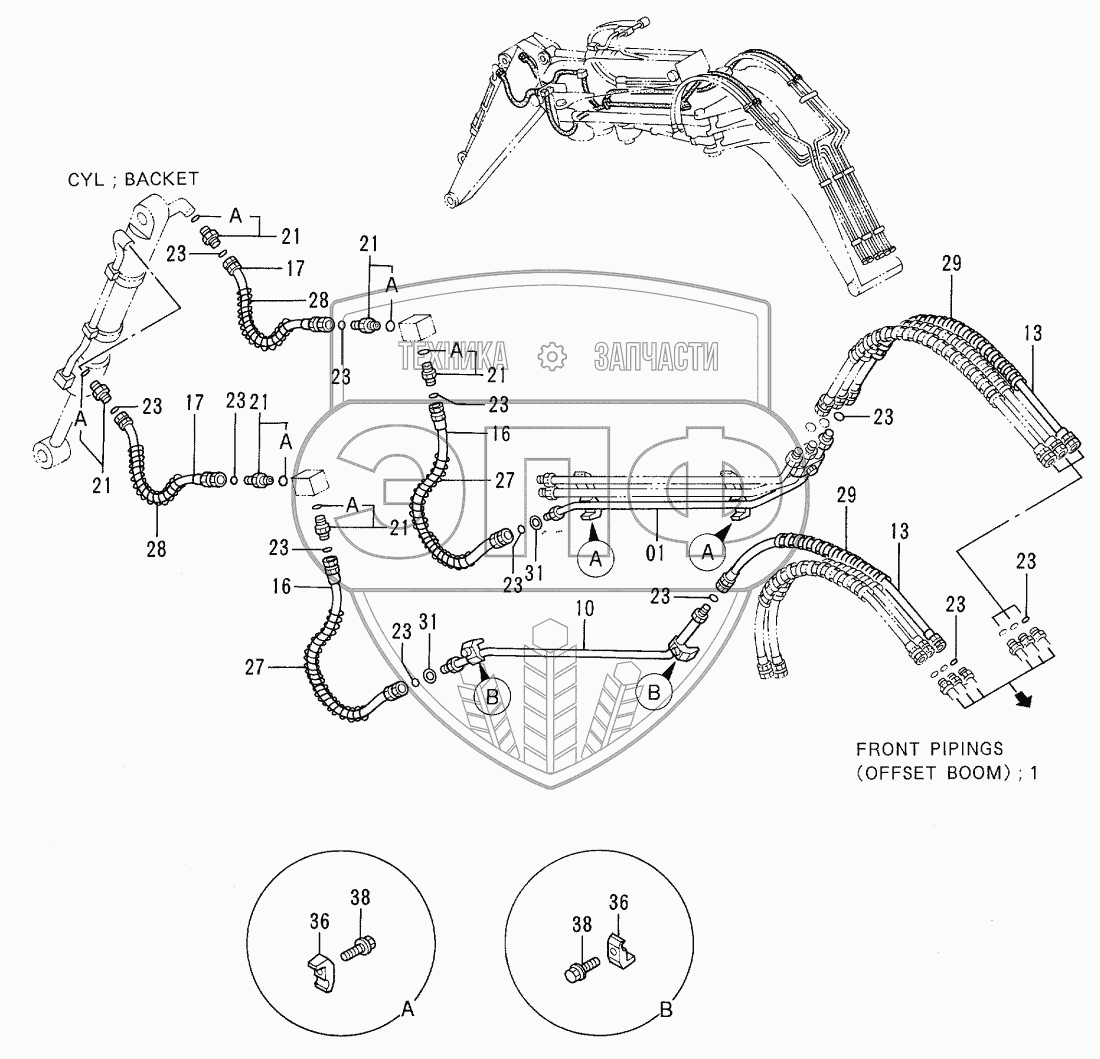 Каталог запасных частей к технике: Hitachi EX-100-3. FRONT PIPINGS <OFFSET BOOM> 3