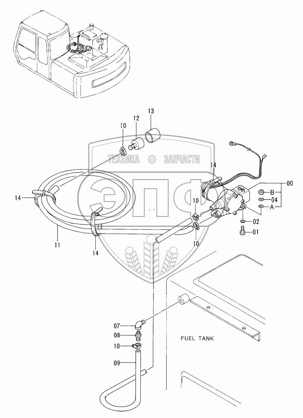Каталог запасных частей к технике: Hitachi EX-100-3. FUEL FEED PUMP <OPTION>