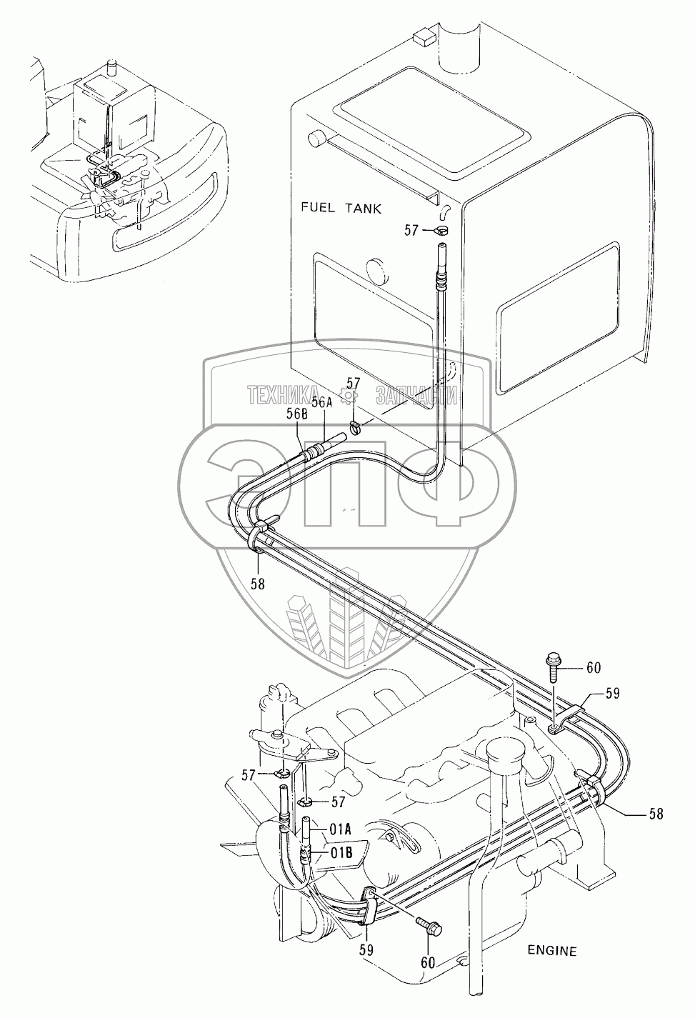 Каталог запасных частей к технике: Hitachi EX-100-3. FUEL PIPINGS