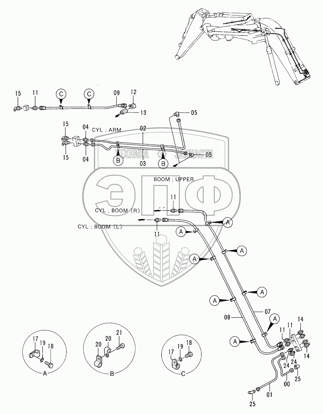 Каталог запасных частей к технике: Hitachi EX-100-3. LUBRICATE PIPINGS <OFFSET BOOM>