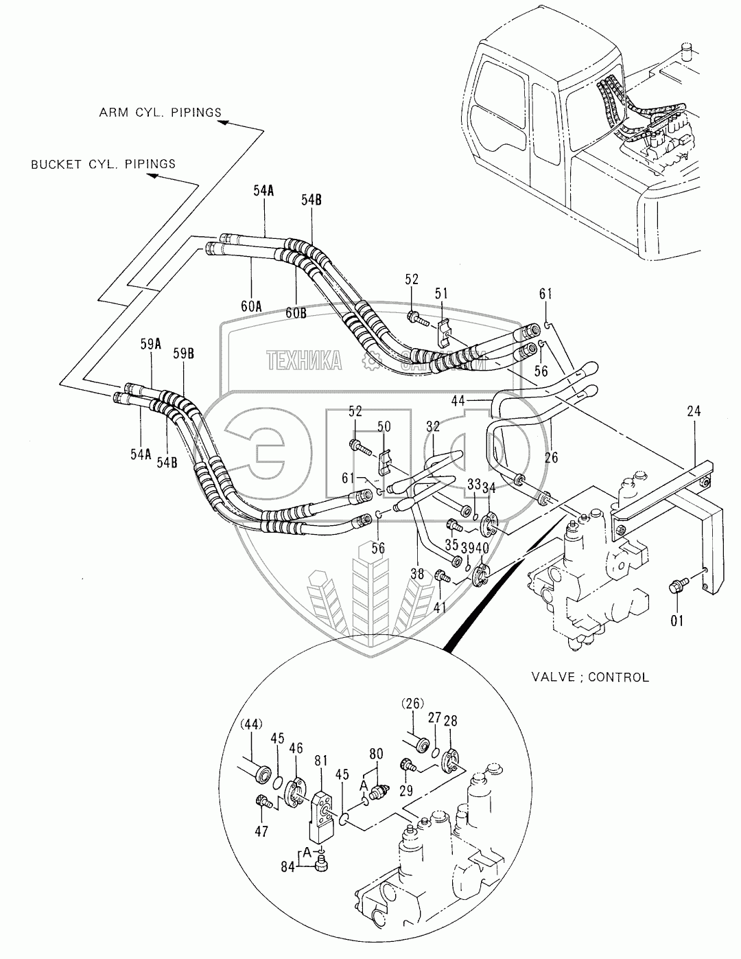 Каталог запасных частей к технике: Hitachi EX-100-3. MAIN PIPINGS (2)