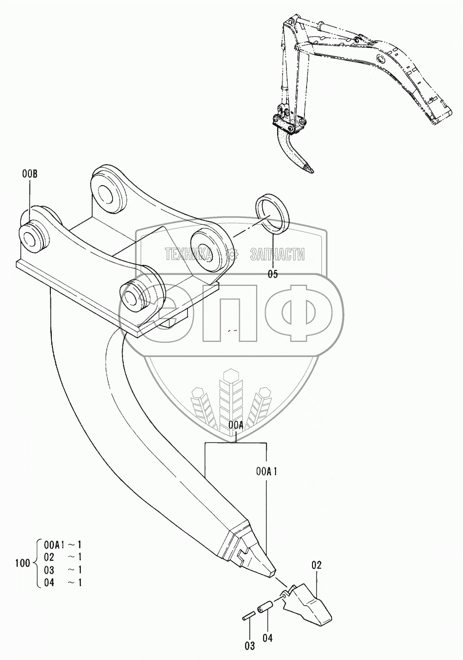 Каталог запасных частей к технике: Hitachi EX-100-3. ONE-POINT RIPPER