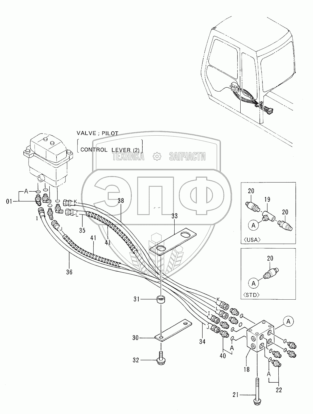 Каталог запасных частей к технике: Hitachi EX-100-3. PILOT PIPINGS (4-1)