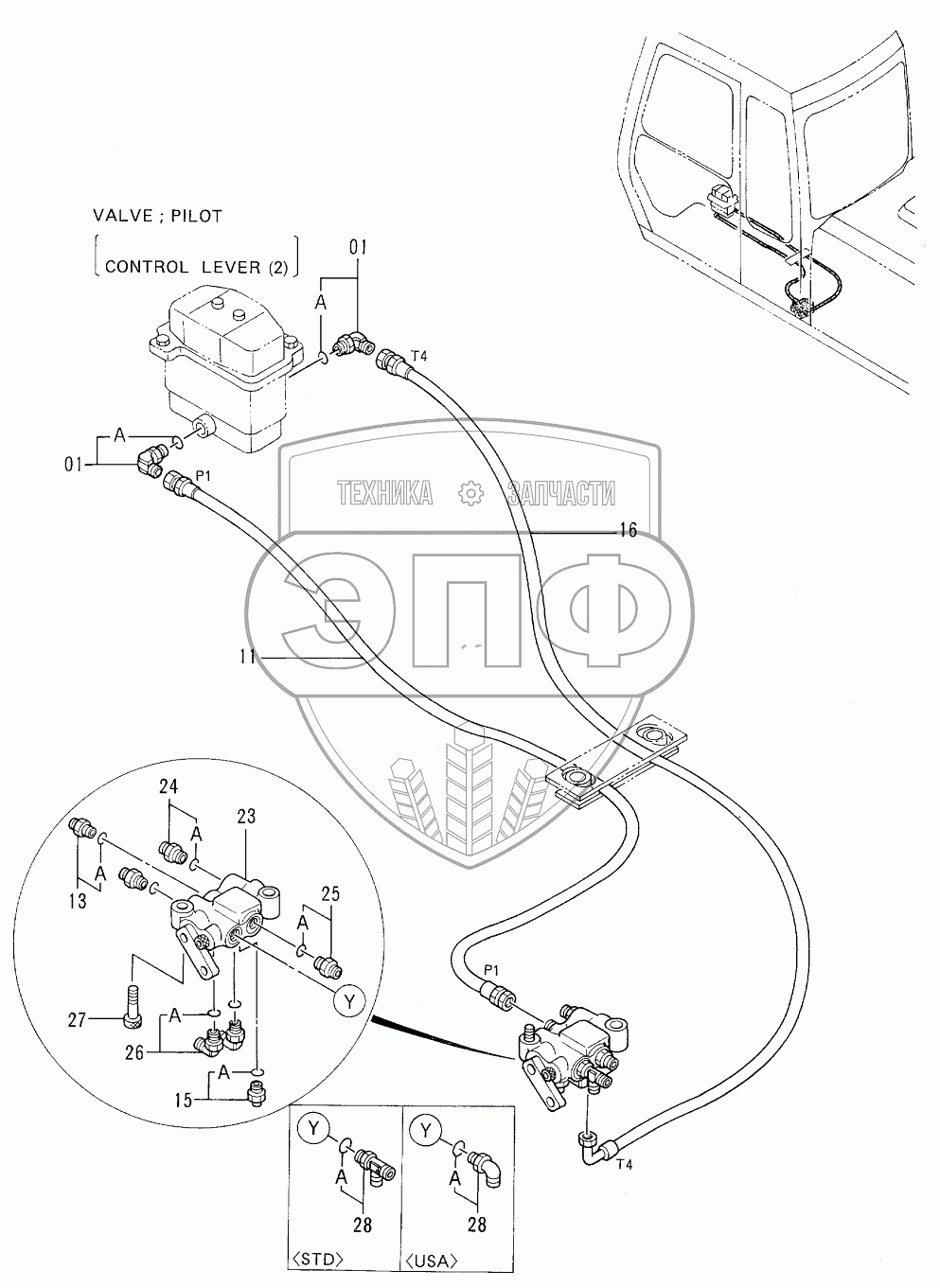 Каталог запасных частей к технике: Hitachi EX-100-3. PILOT PIPINGS (4-2)