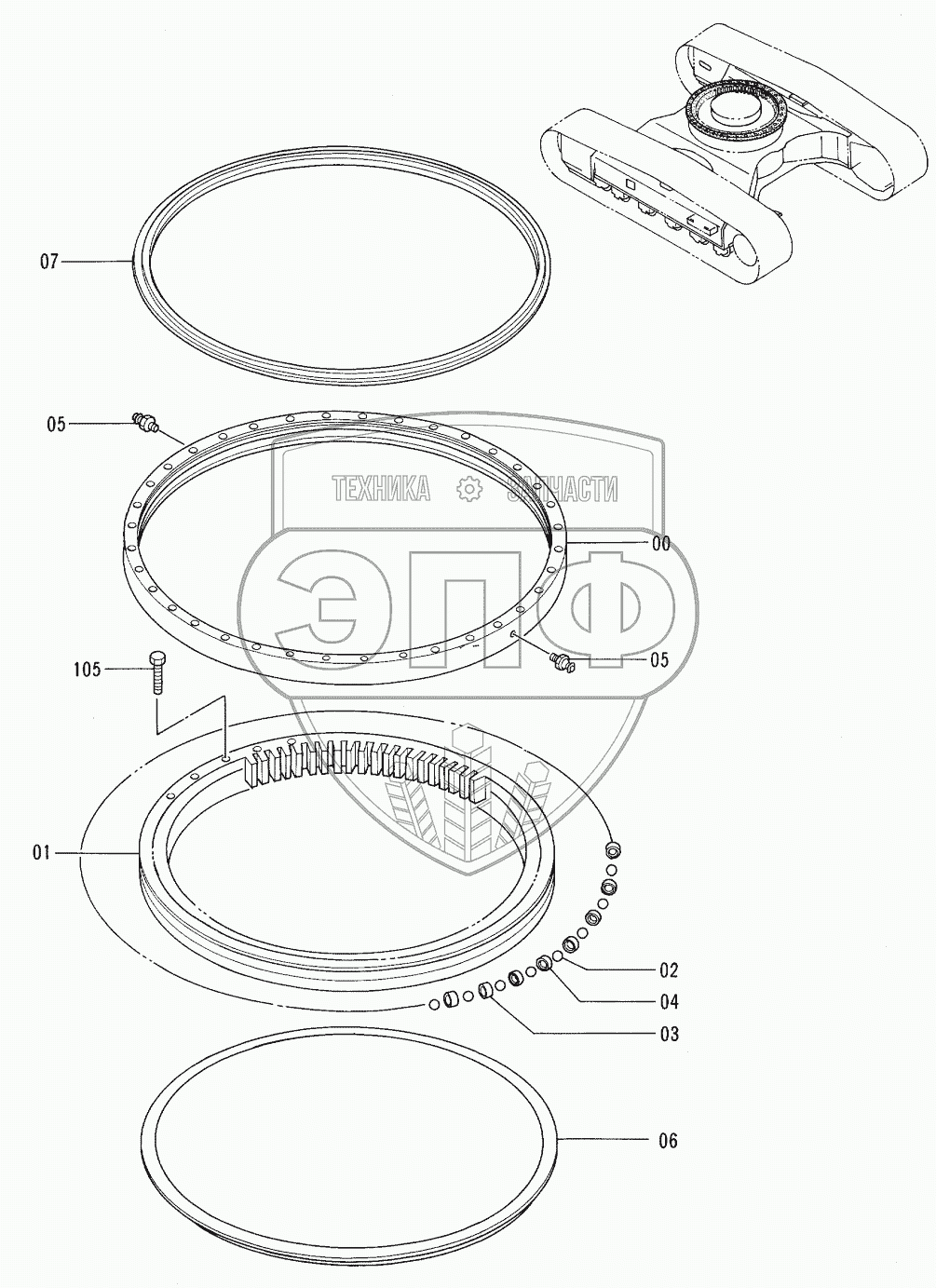 Каталог запасных частей к технике: Hitachi EX-100-3. SWING BEARING