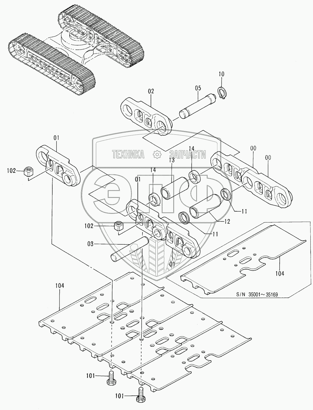 Каталог запасных частей к технике: Hitachi EX-100-3. TRACK-LINK (500G)