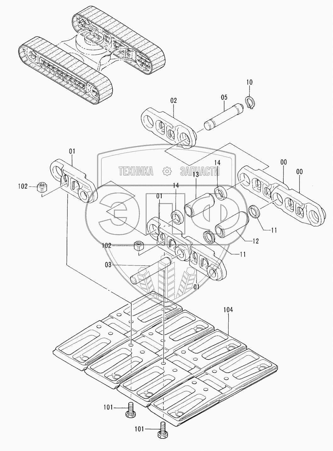 Каталог запасных частей к технике: Hitachi EX-100-3. TRACK-LINK (510F)