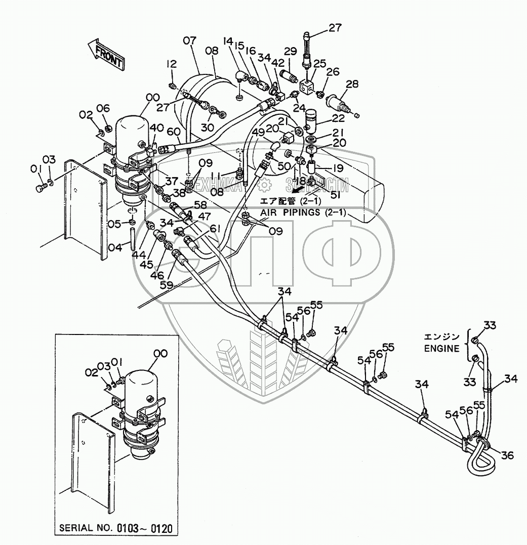 Каталог запасных частей к технике: Hitachi EX-100WD. AIR PIPINGS (1)