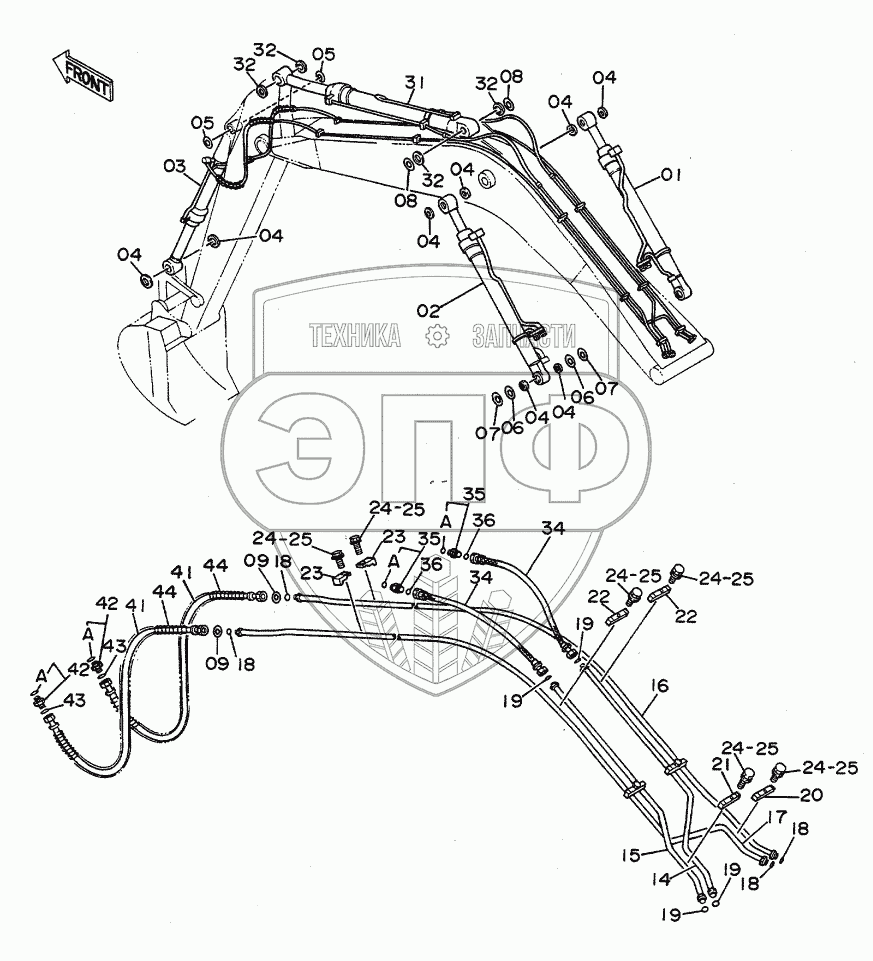 Каталог запасных частей к технике: Hitachi EX-100WD. FRONT PIPINGS