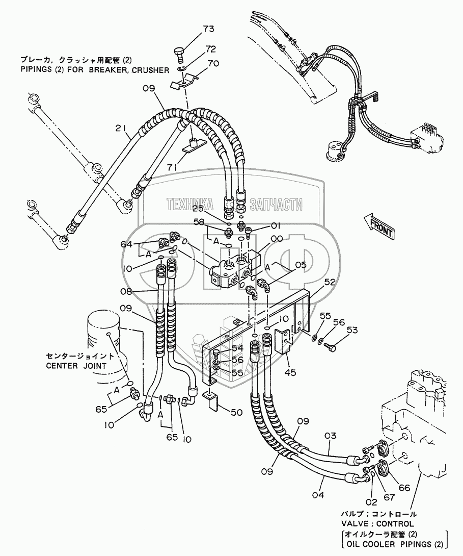 Каталог запасных частей к технике: Hitachi EX-100WD. Pipings (1) For Breaker, Crusher