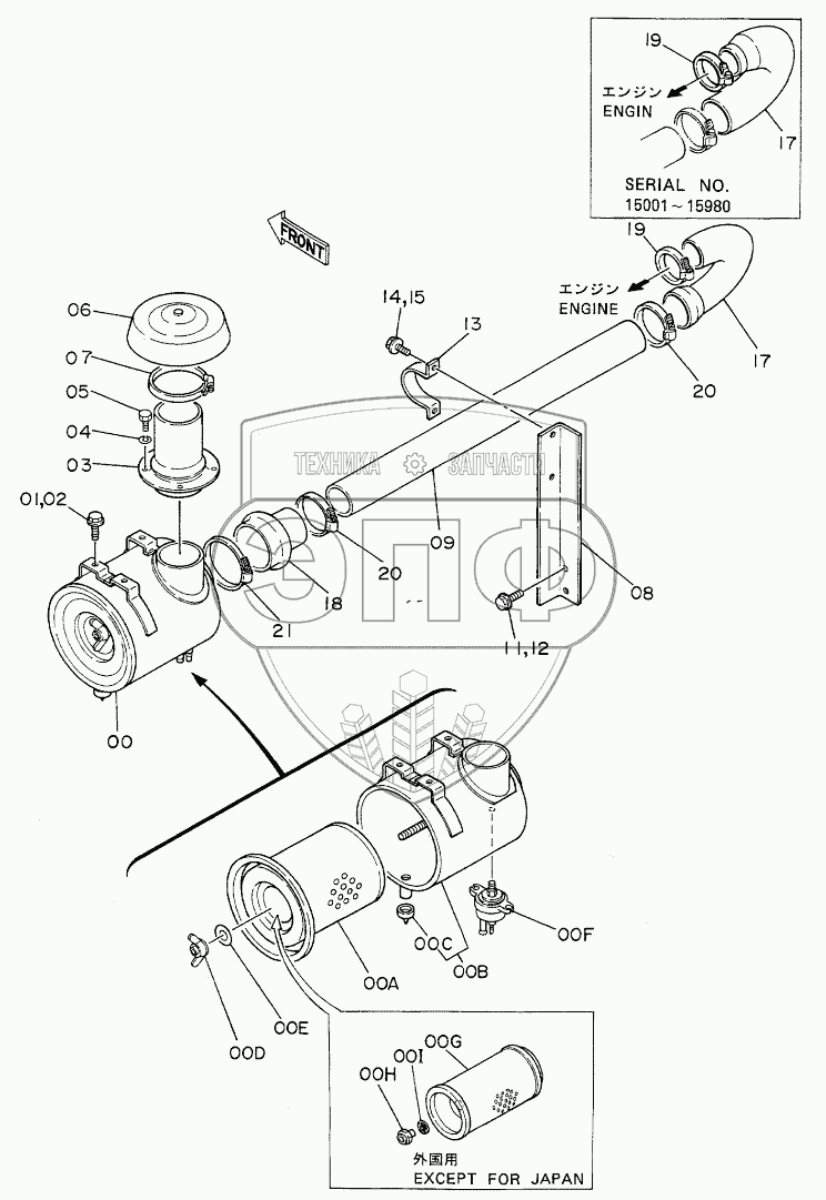 Каталог запасных частей к технике: Hitachi EX-120. AIR CLEANER