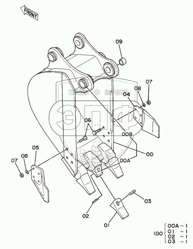 Каталог запасных частей к технике: Hitachi EX-120. BUCKET 0.17
