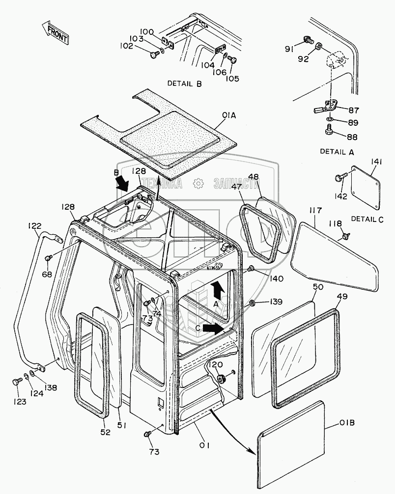 Каталог запасных частей к технике: Hitachi EX-120. CAB (1) <DX>