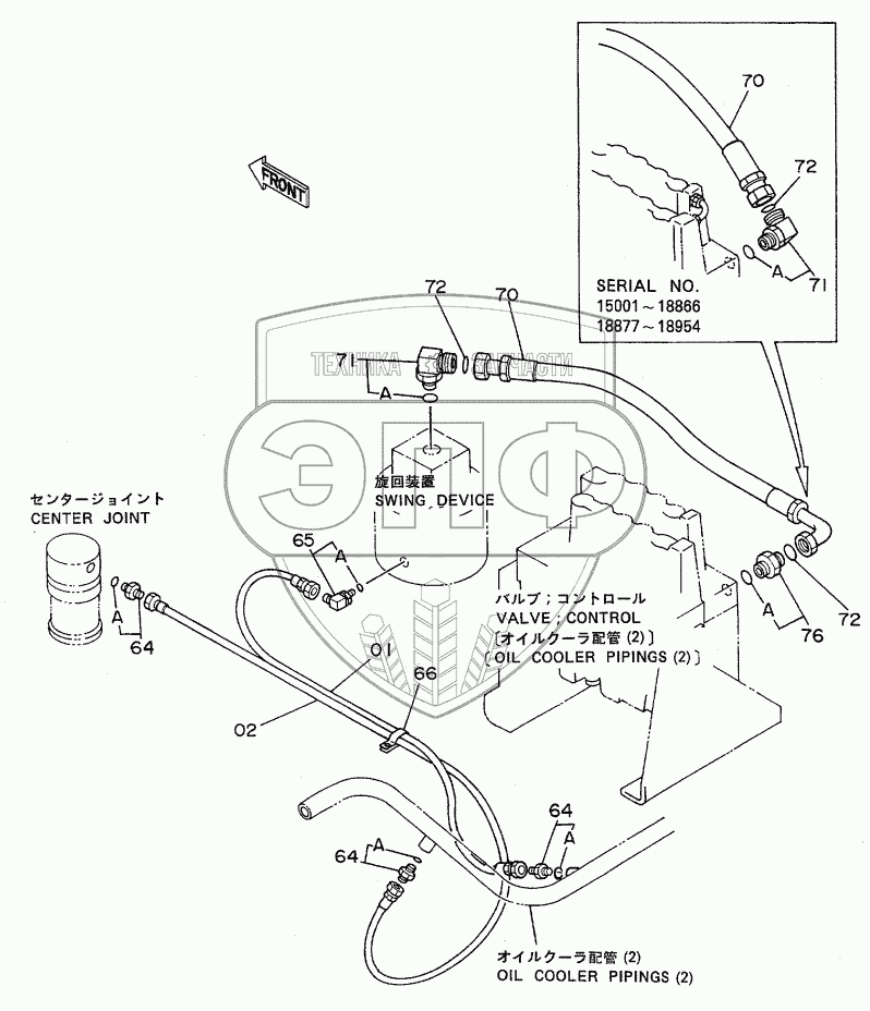 Каталог запасных частей к технике: Hitachi EX-120. OIL COOLER PIPINGS (3)