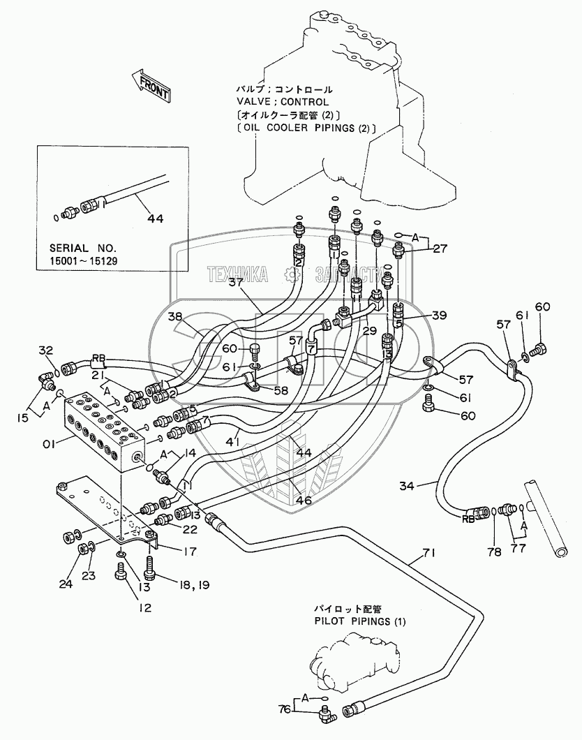Каталог запасных частей к технике: Hitachi EX-120. PILOT PIPINGS (3-1)