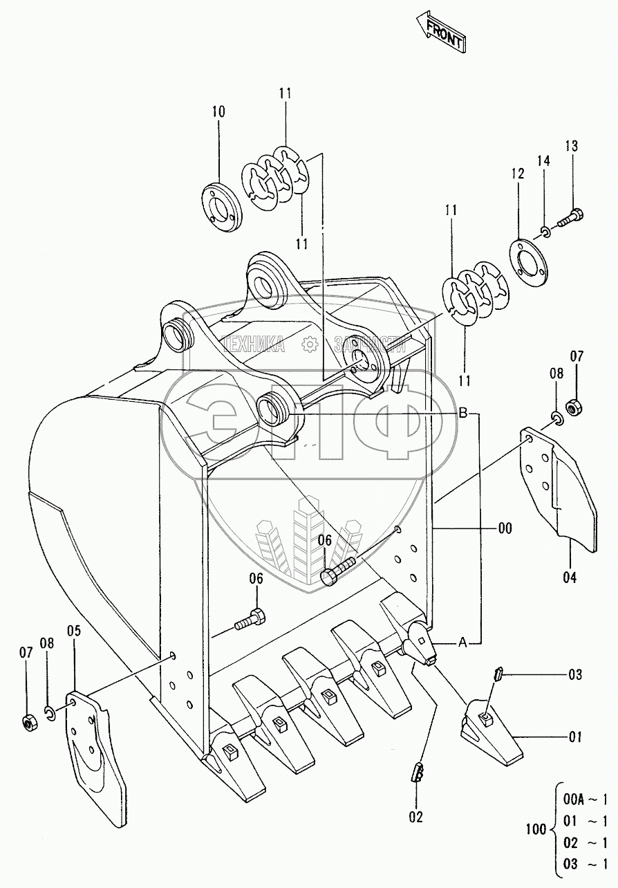 Каталог запасных частей к технике: Hitachi EX-120-2. Bucket 0.5