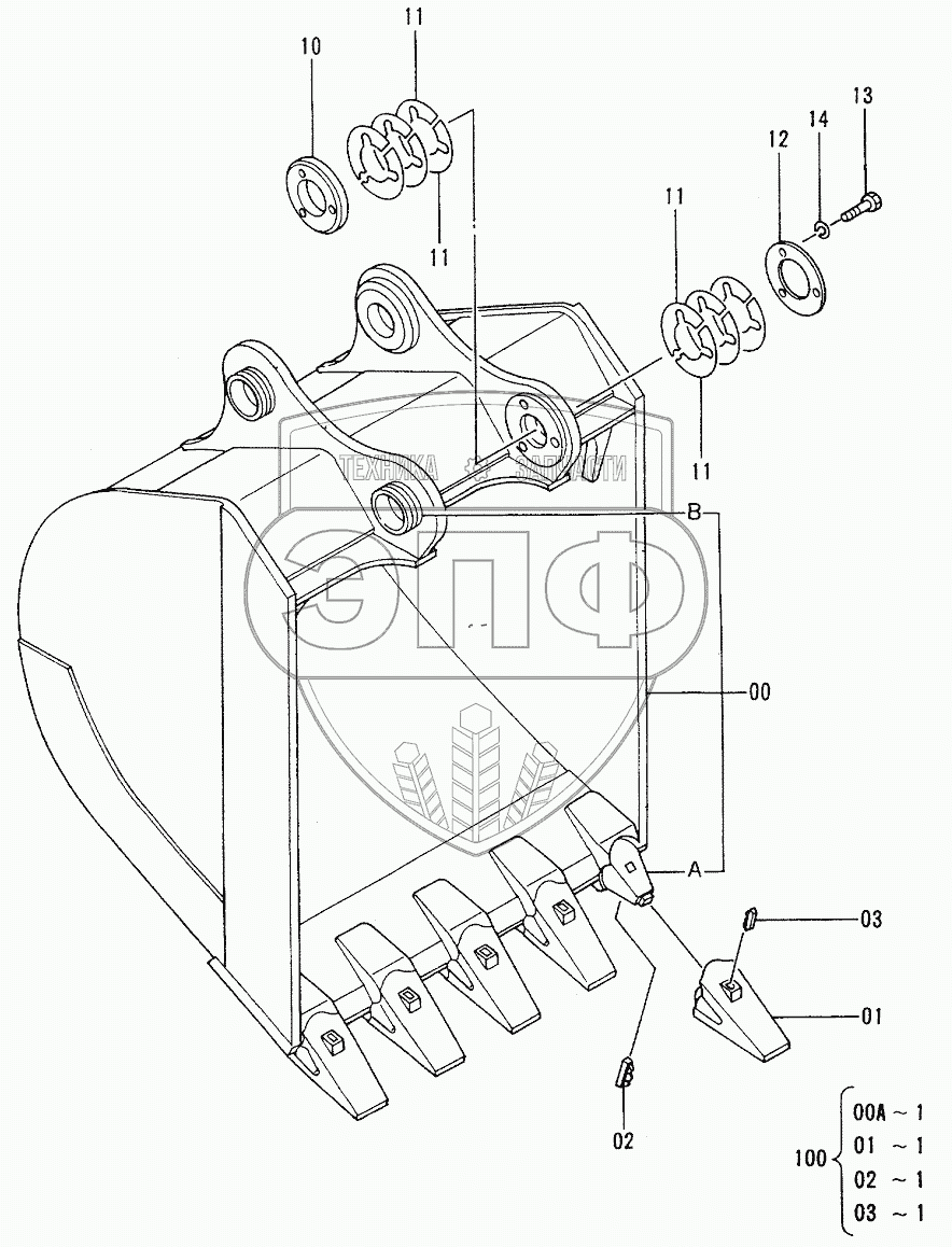 Каталог запасных частей к технике: Hitachi EX-120-2. Bucket 0.55