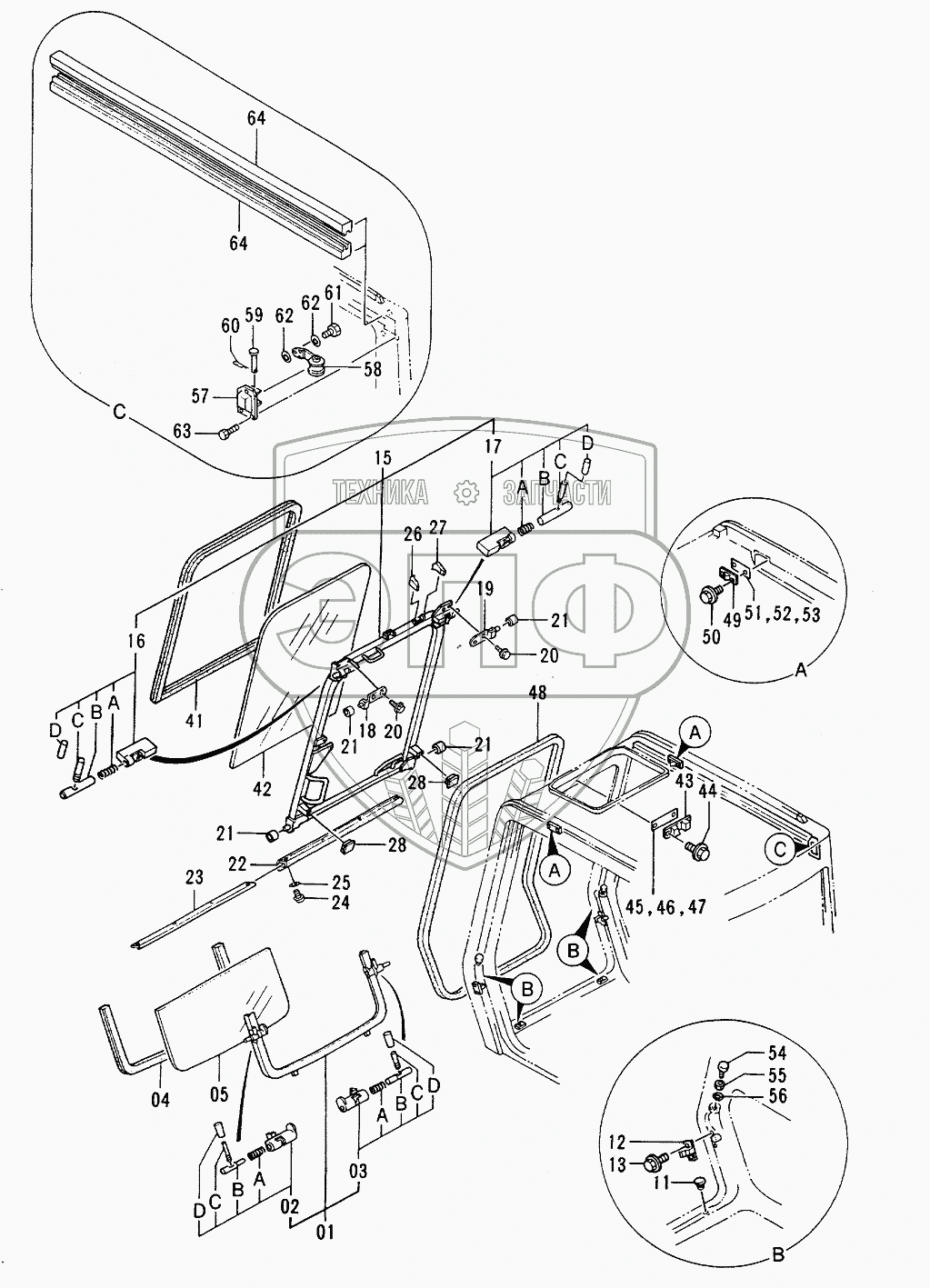 Каталог запасных частей к технике: Hitachi EX-120-2. Cab (2) <N.EUROPE>
