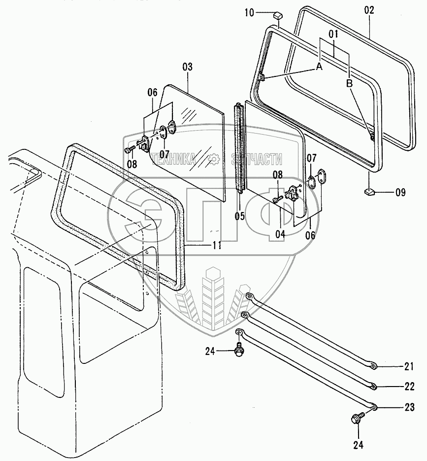 Каталог запасных частей к технике: Hitachi EX-120-2. Cab (6) <STD>