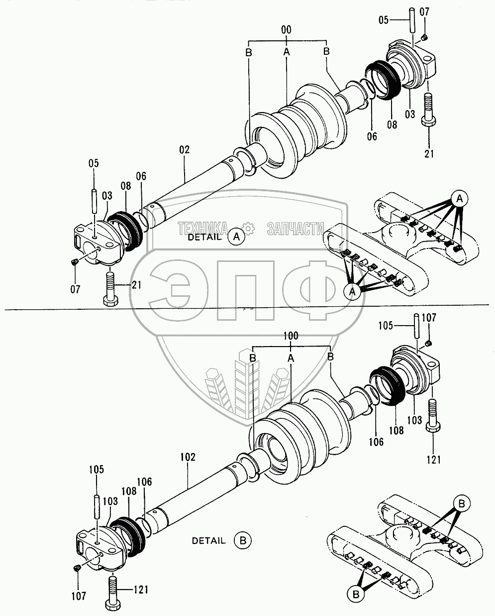Каталог запасных частей к технике: Hitachi EX-120-2. Lower Roller (Rubber Crawler)