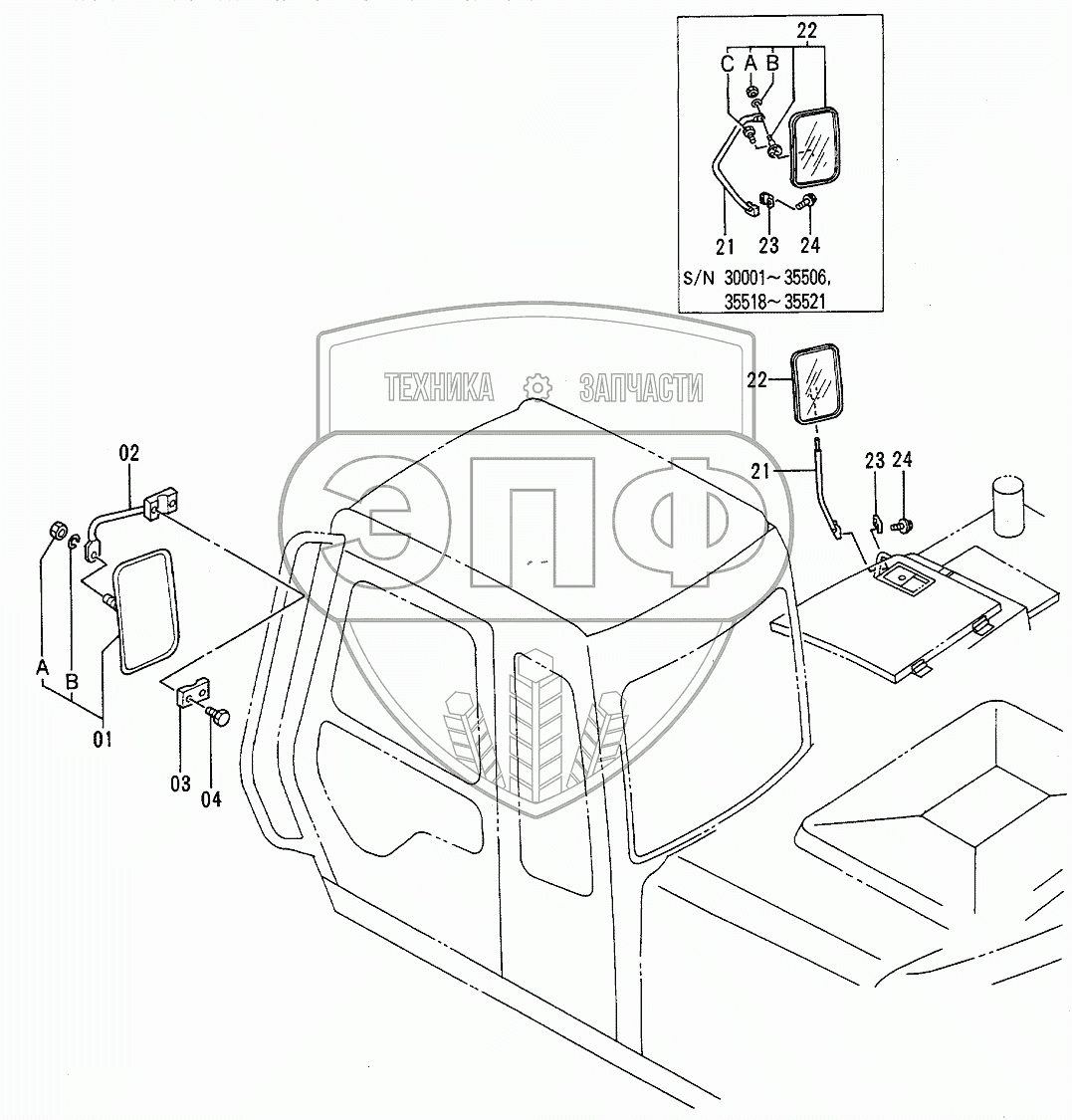 Каталог запасных частей к технике: Hitachi EX-120-2. Rearview Mirror