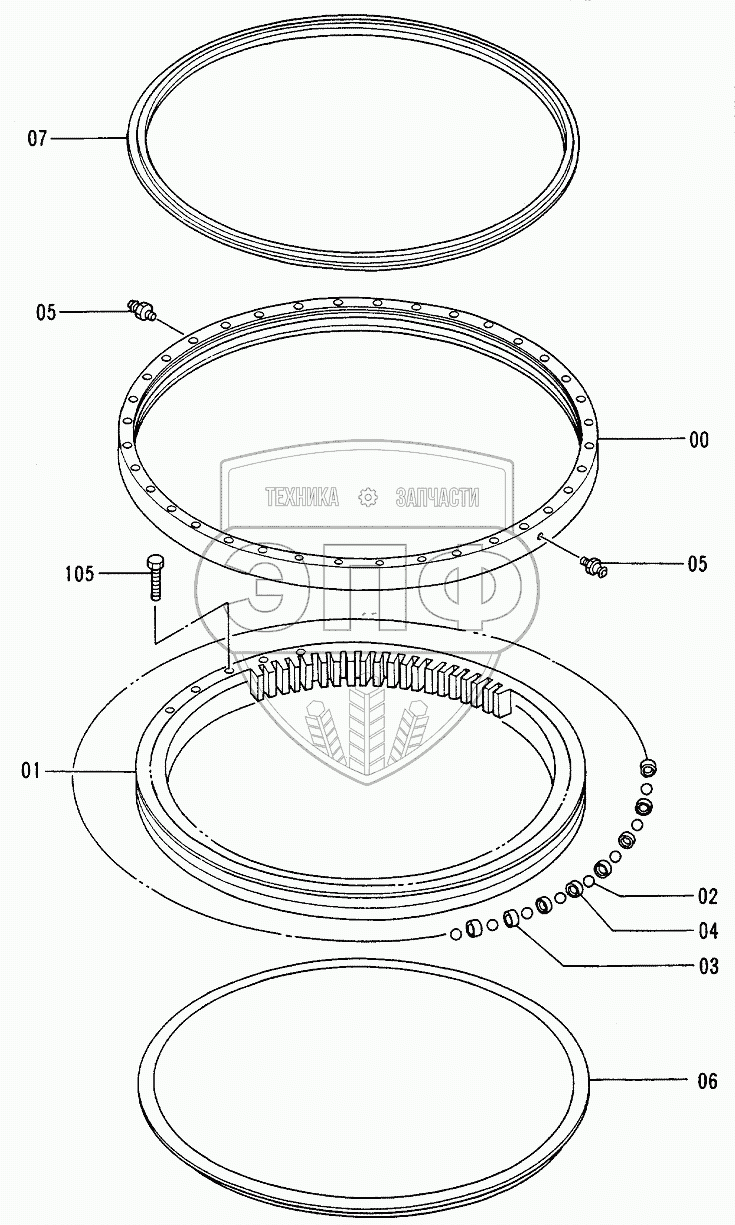 Каталог запасных частей к технике: Hitachi EX-120-2. Swing Bearing