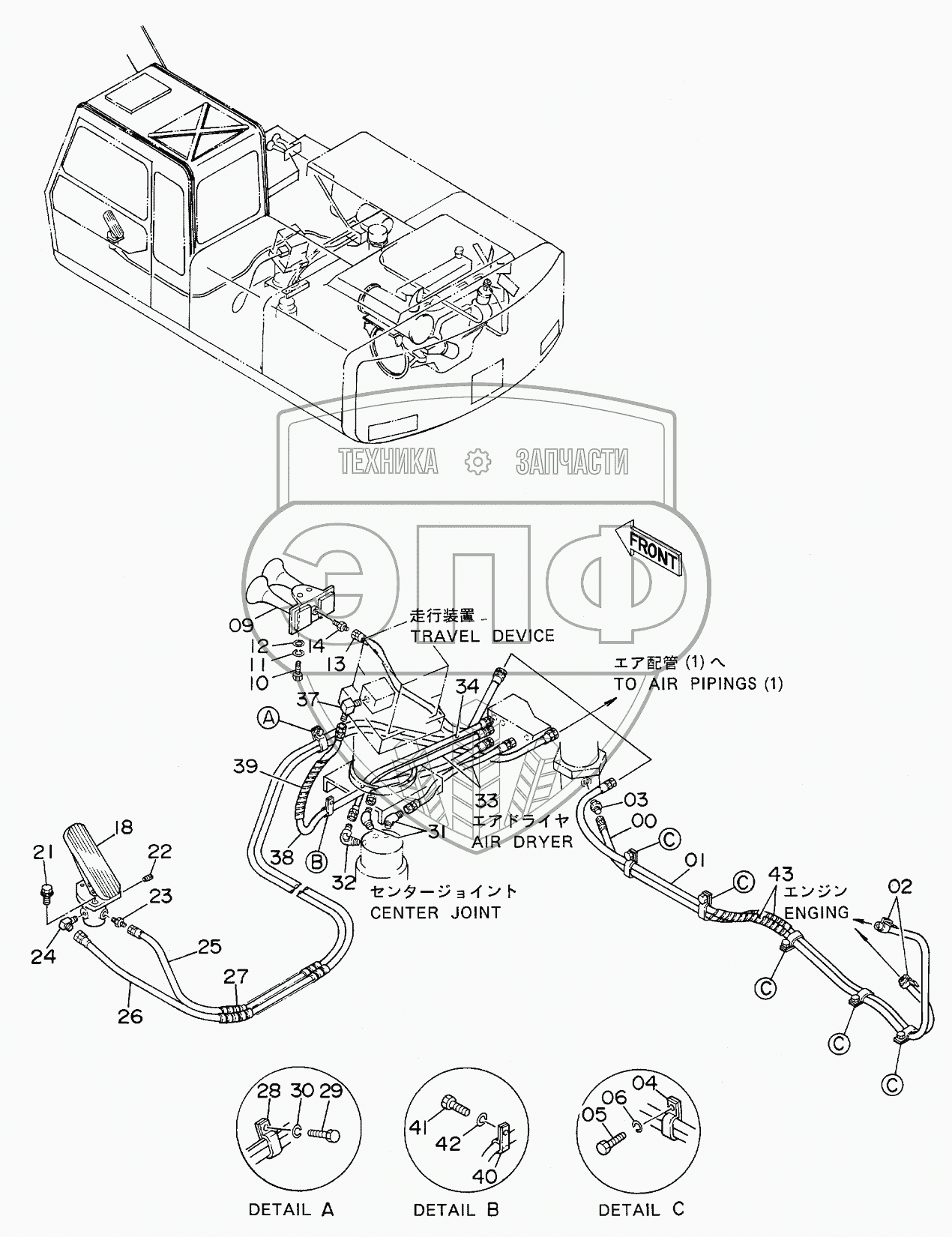 Каталог запасных частей к технике: Hitachi EX-160WD. AIR PIPINGS (2)