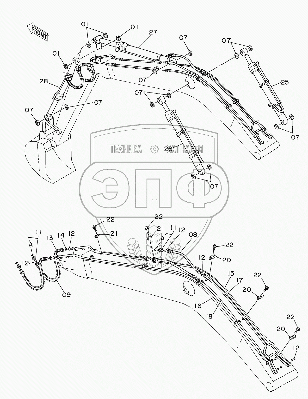 Каталог запасных частей к технике: Hitachi EX-160WD. FRONT PIPINGS