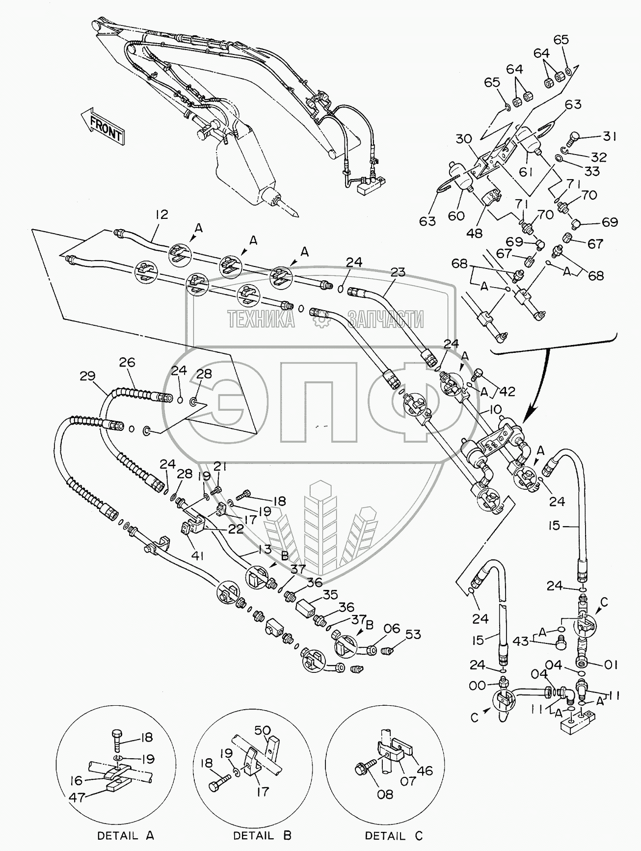 Каталог запасных частей к технике: Hitachi EX-160WD. FRONT PIPINGS FOR NPK BREAKER
