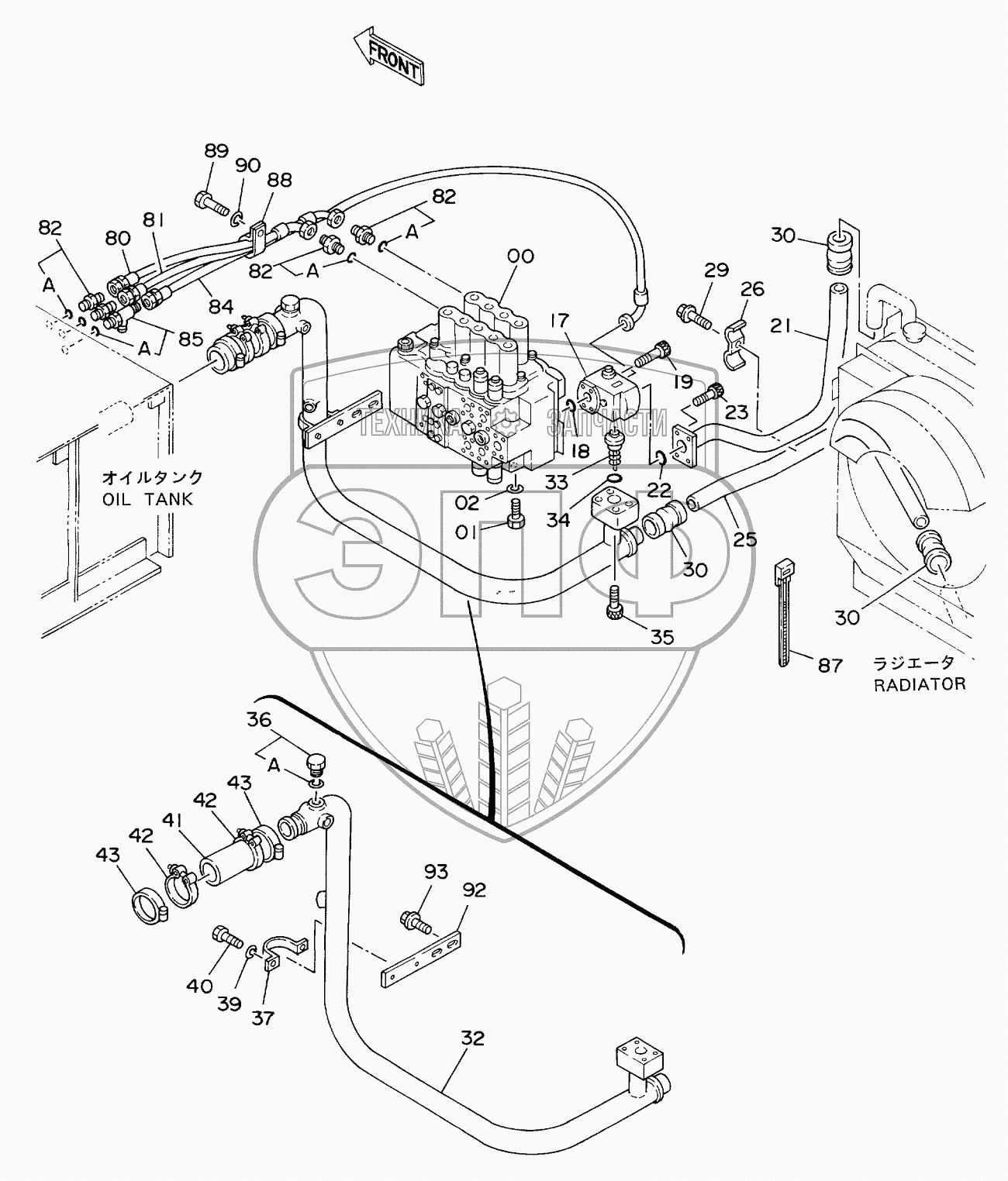 Каталог запасных частей к технике: Hitachi EX-160WD. OIL COOLER PIPINGS (2)