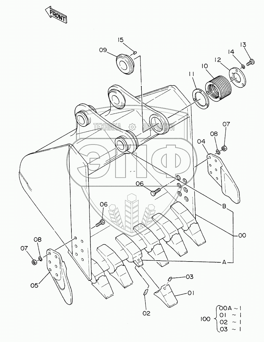 Каталог запасных частей к технике: Hitachi EX-200. BUCKET 0.9