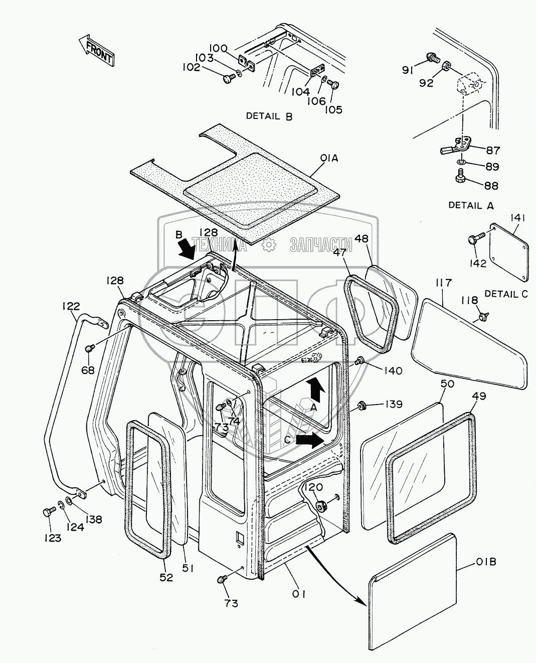 Каталог запасных частей к технике: Hitachi EX-200. CAB (1) <DX>