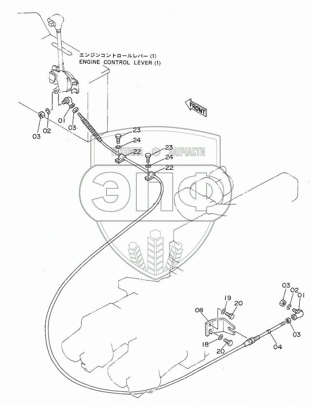 Каталог запасных частей к технике: Hitachi EX-200. ENGINE CONTROL LEVER (2) <DX>