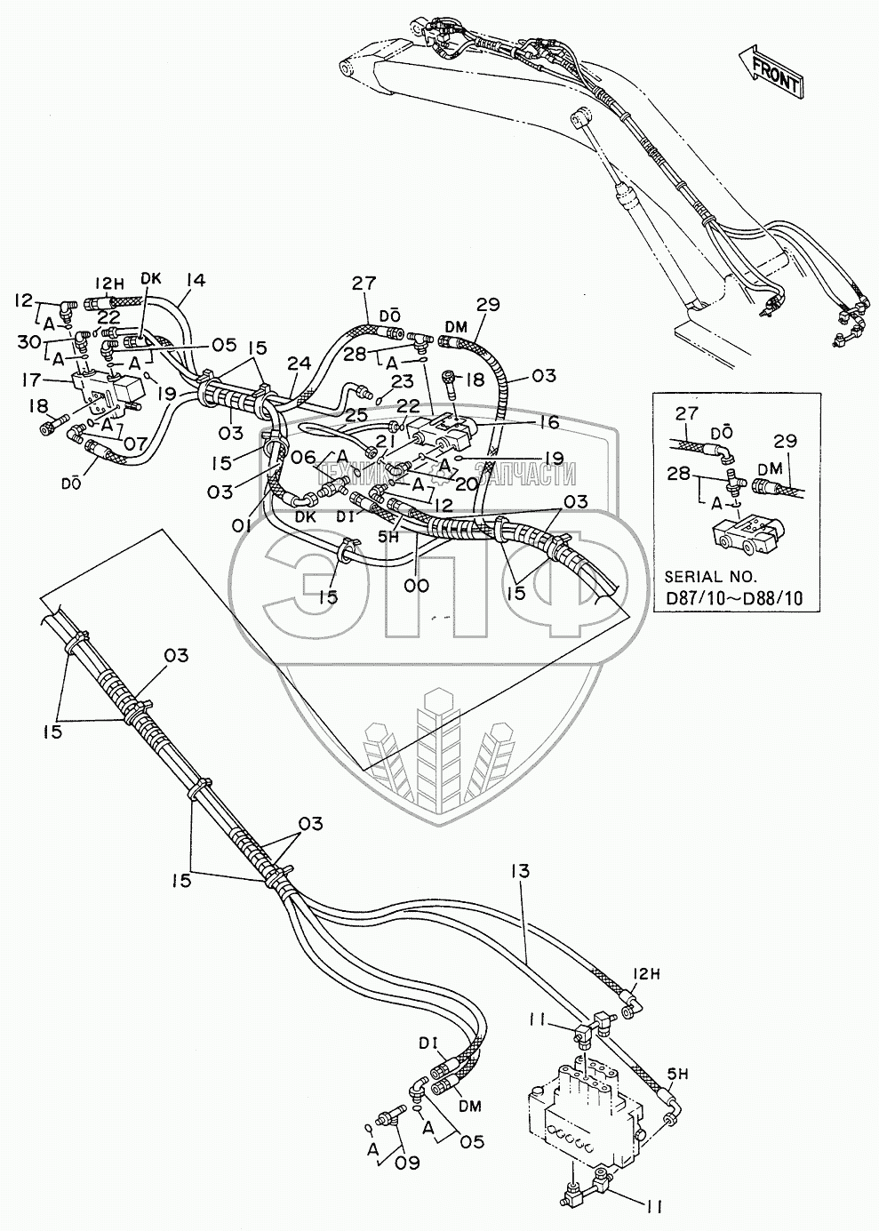 Каталог запасных частей к технике: Hitachi EX-200. HOSE RUPTURE VALVE PIPINGS (ARM)