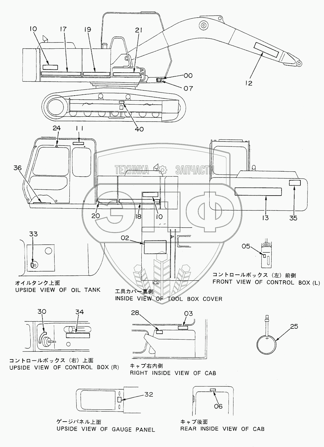 Каталог запасных частей к технике: Hitachi EX-200. NAME-PLATE (ENGLISH) <DX>