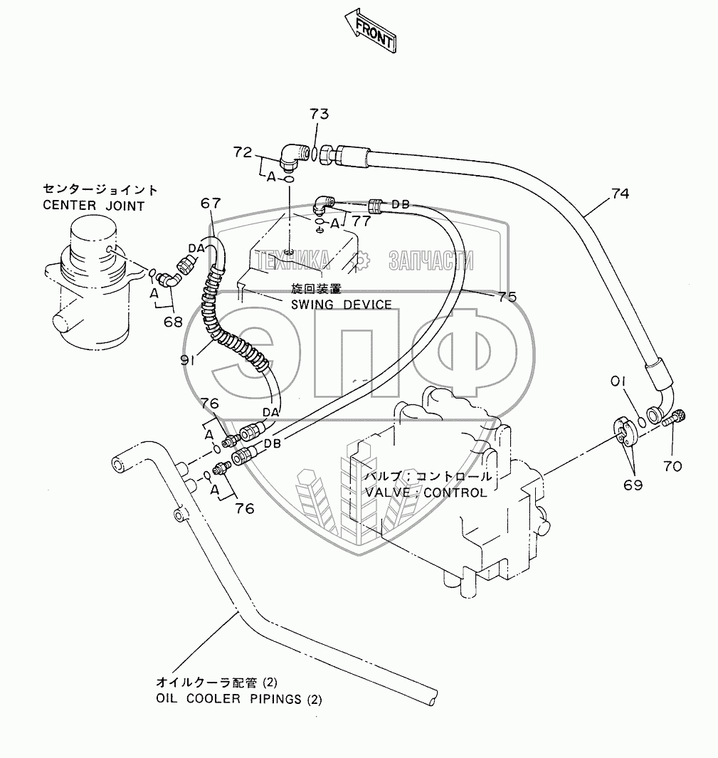 Каталог запасных частей к технике: Hitachi EX-200. OIL COOLER PIPINGS (3)