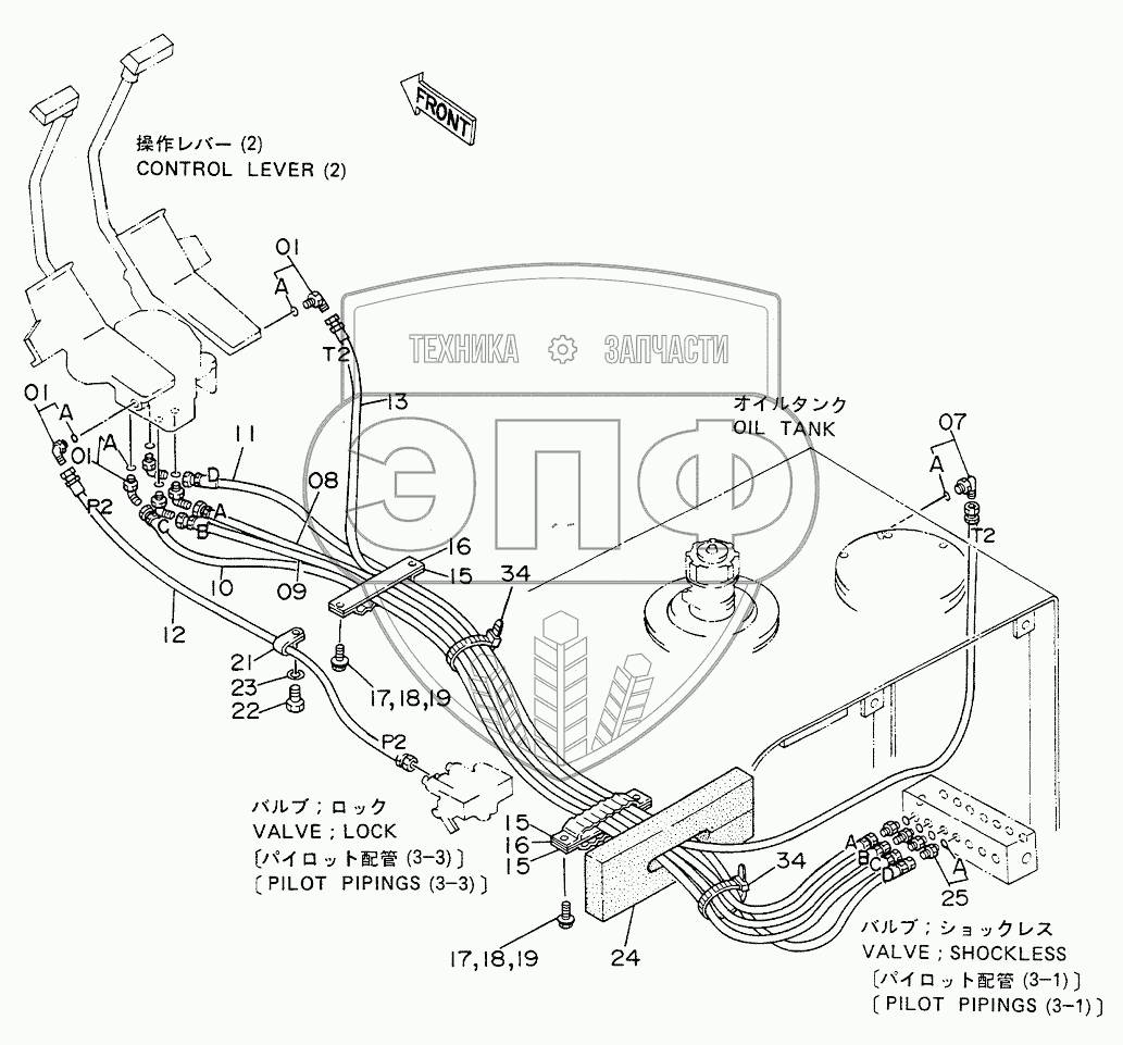 Каталог запасных частей к технике: Hitachi EX-200. PILOT PIPINGS (4)