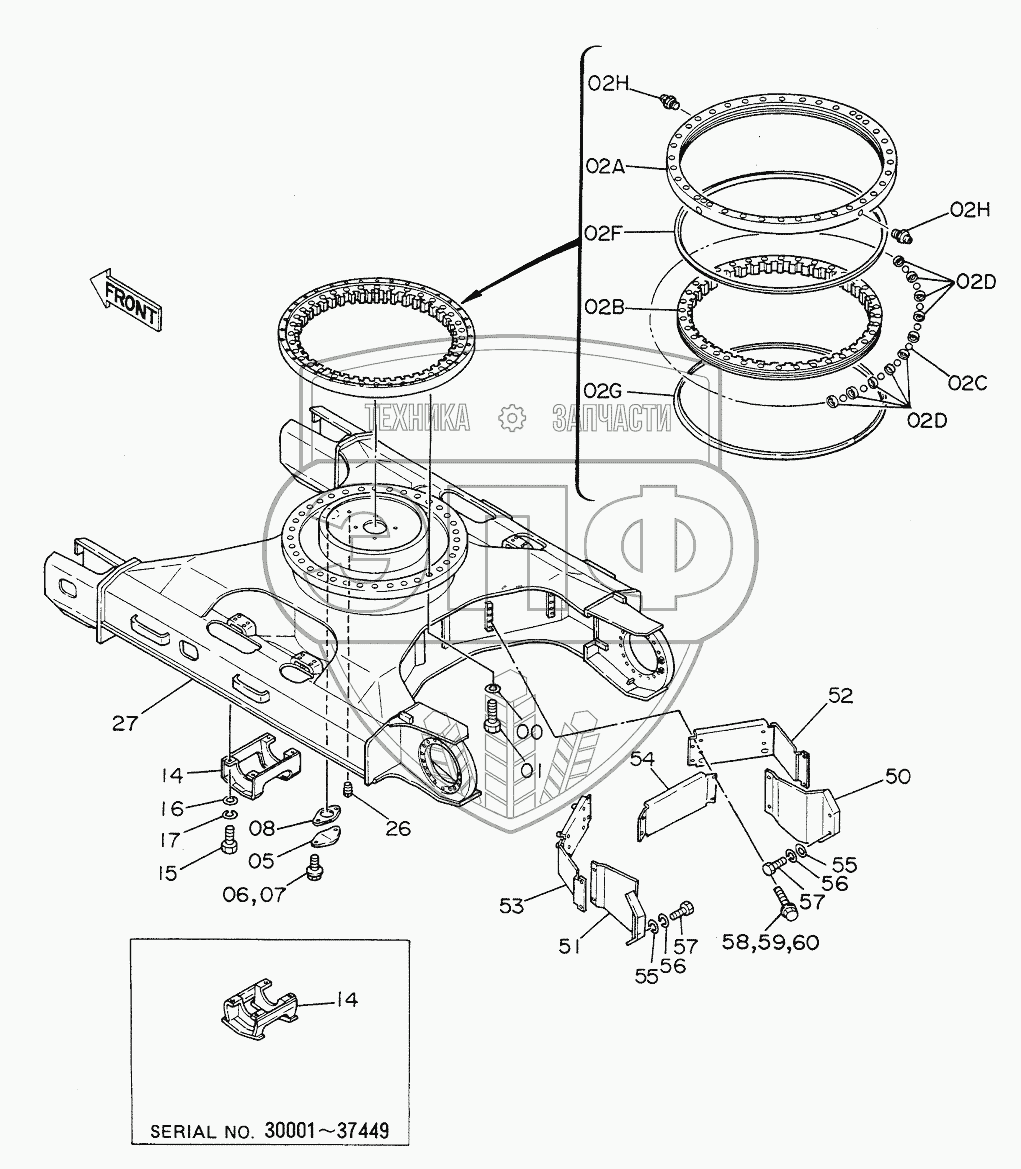Каталог запасных частей к технике: Hitachi EX-200. TRACK FRAME (STD. TRACK)