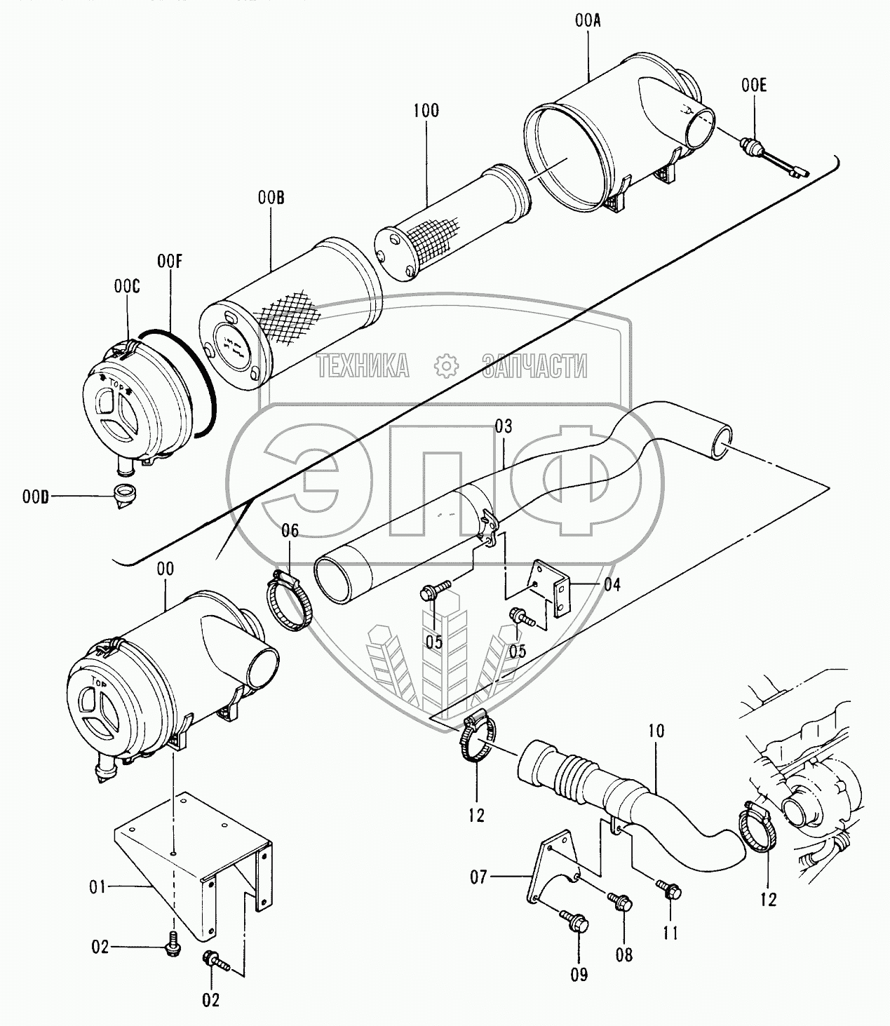 Каталог запасных частей к технике: Hitachi EX-200-2. AIR CLEANER 60001-