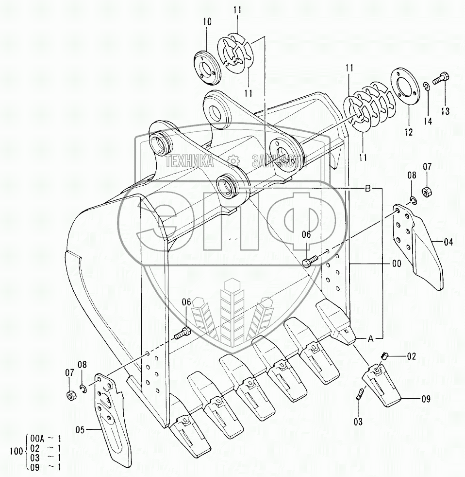 Каталог запасных частей к технике: Hitachi EX-200-2. BUCKET 0.9 60001-