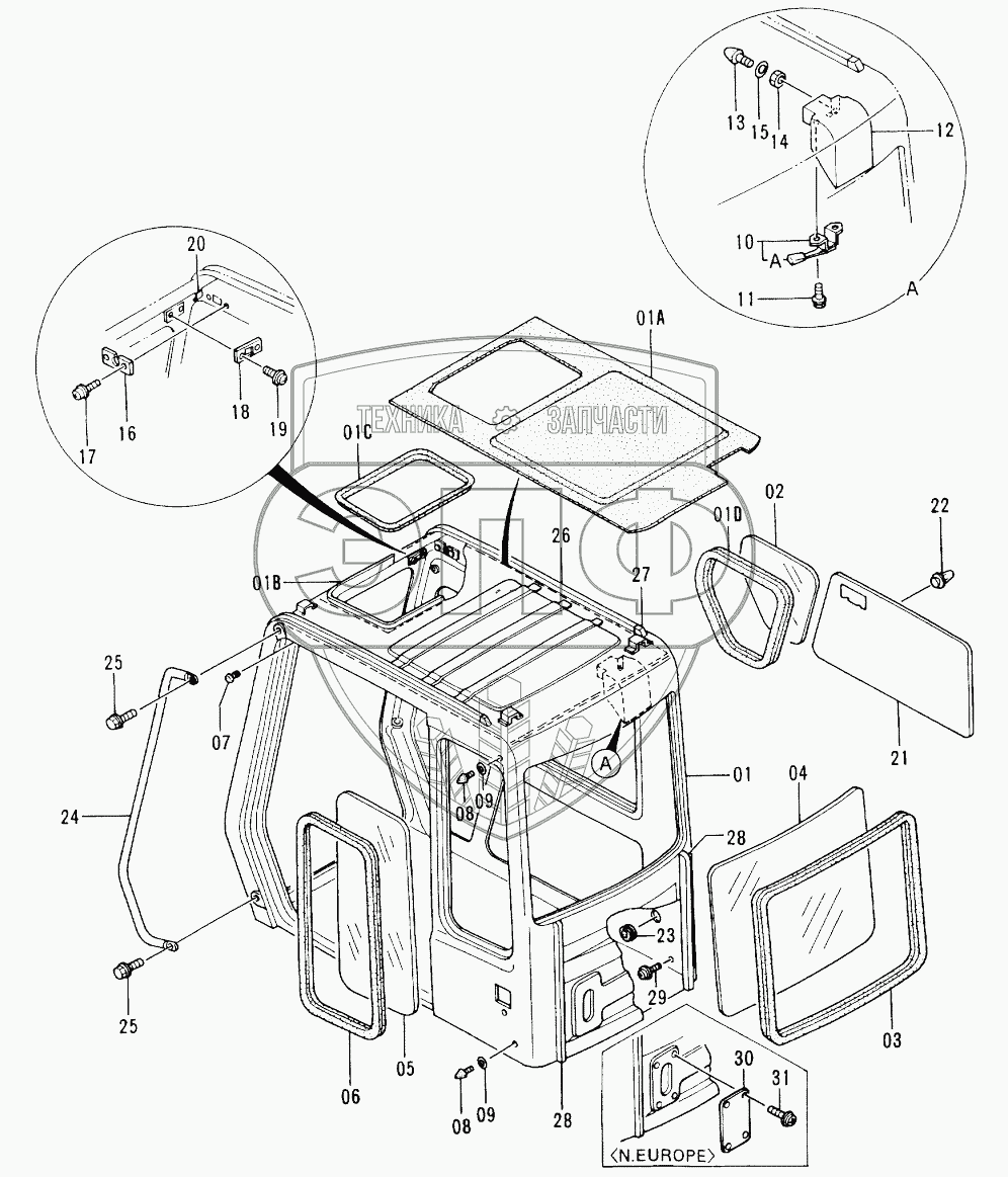 Каталог запасных частей к технике: Hitachi EX-200-2. CAB (1) 60001-