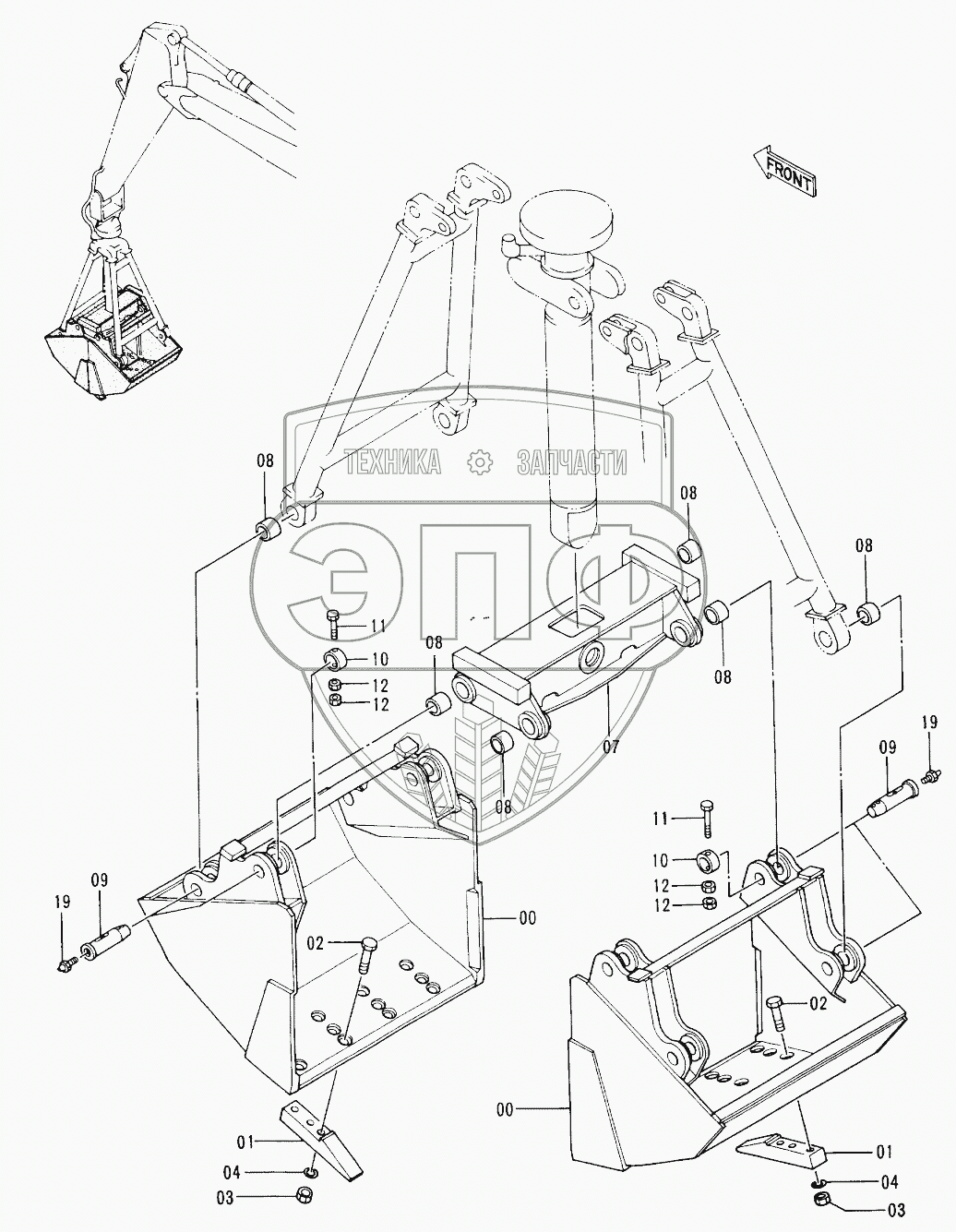 Каталог запасных частей к технике: Hitachi EX-200-2. CLAMSHELL BUCKET (1) 60001-