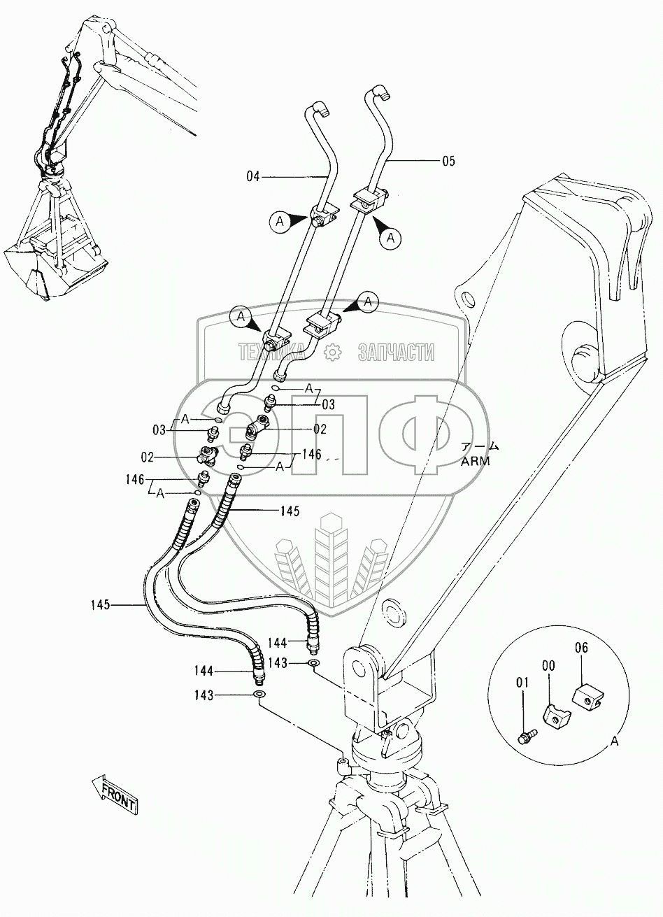 Каталог запасных частей к технике: Hitachi EX-200-2. CLAMSHELL PIPINGS 60001-