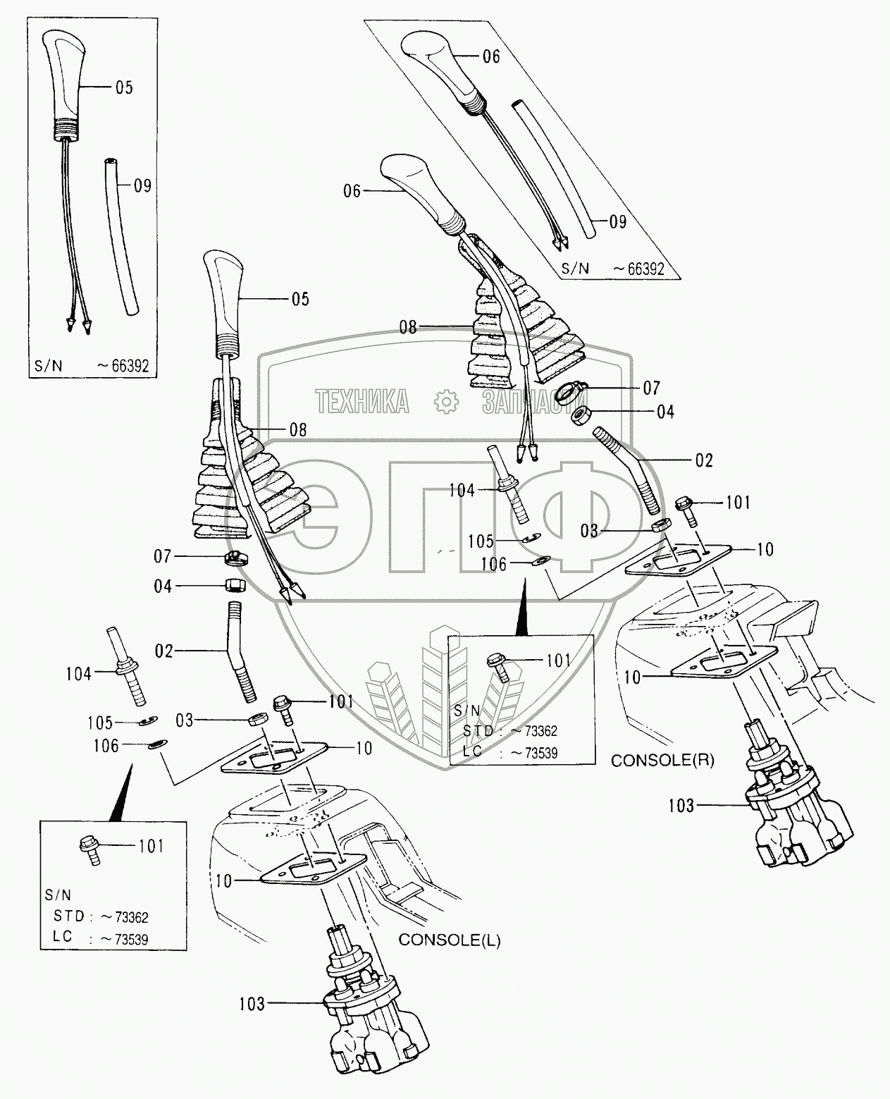 Каталог запасных частей к технике: Hitachi EX-200-2. CONTROL LEVER (1) 60001-