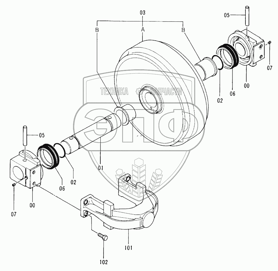 Каталог запасных частей к технике: Hitachi EX-200-2. FRONT IDLER 60001-