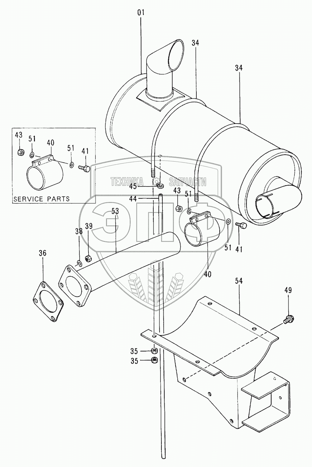 Каталог запасных частей к технике: Hitachi EX-200-2. MUFFLER 60001-