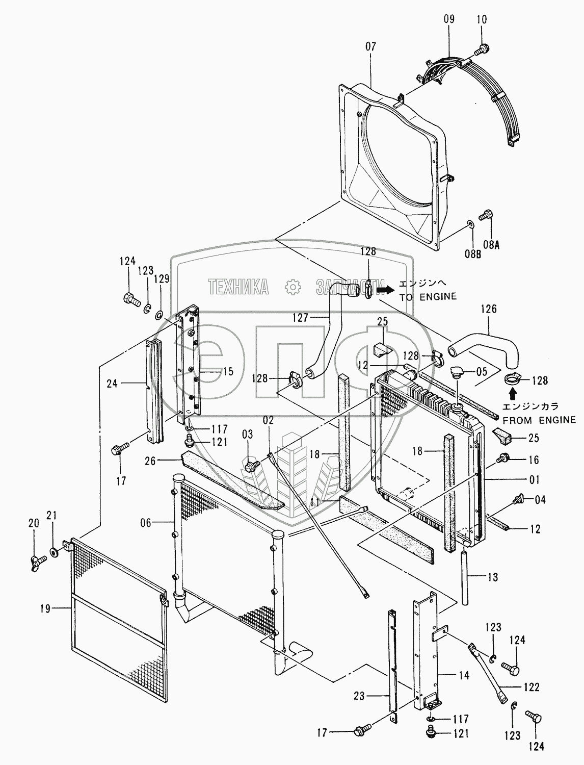 Каталог запасных частей к технике: Hitachi EX-200-2. RADIATOR 60001-