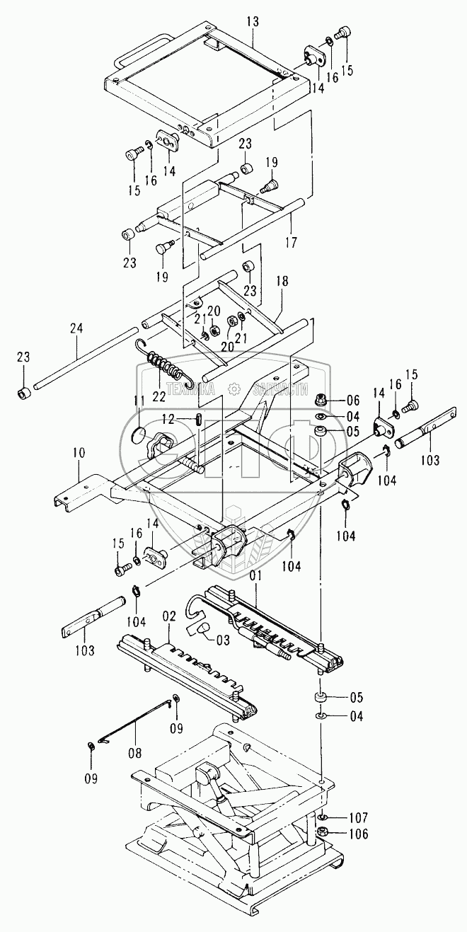 Каталог запасных частей к технике: Hitachi EX-200-2. SEAT STAND <USA> 60001-74817