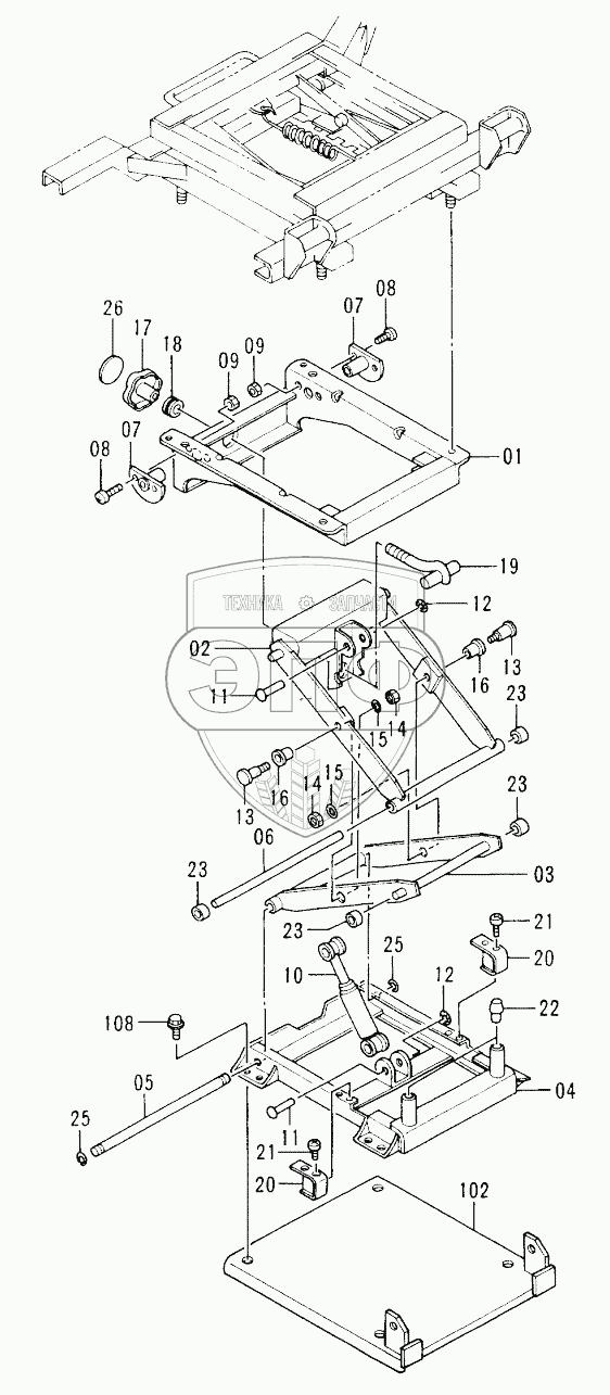 Каталог запасных частей к технике: Hitachi EX-200-2. SEAT SUSPENSION <USA> 60001-74187