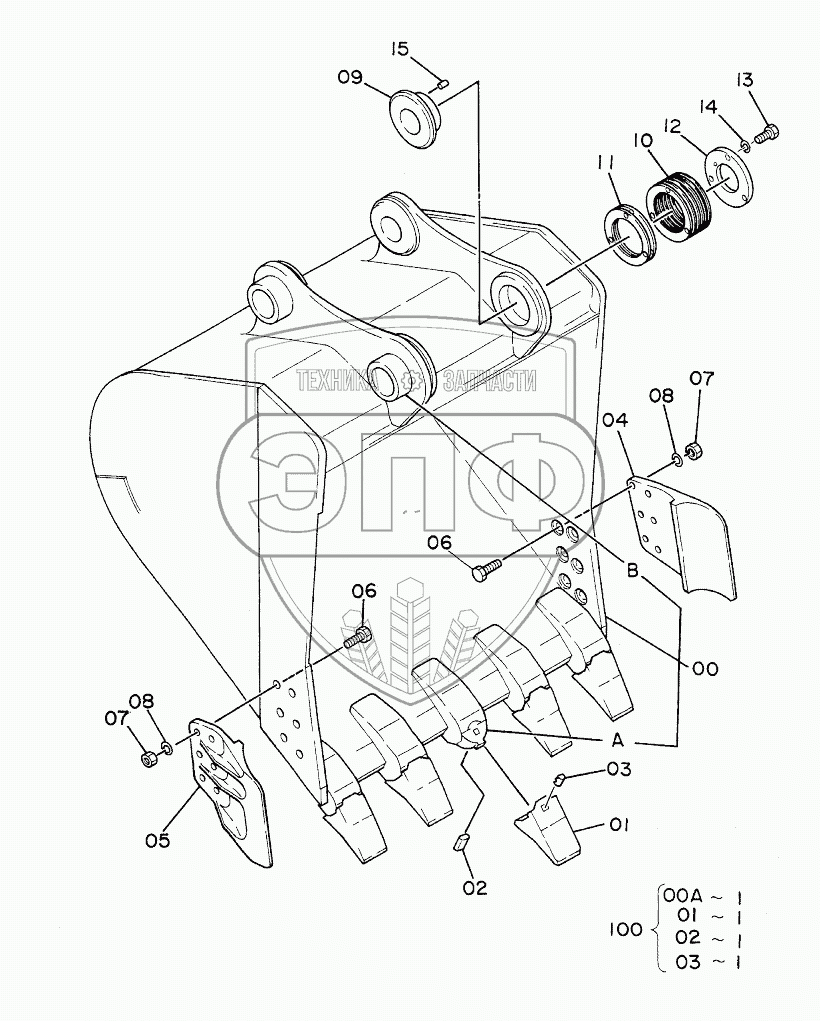 Каталог запасных частей к технике: Hitachi EX-220. BUCKET 1.1